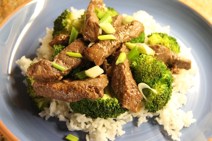 - Plate rice and broccoli, then top with beef and garnish with green onion.