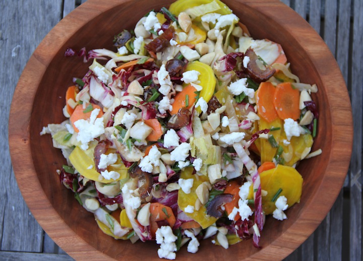 - Combine sliced vegetables with radicchio and endive in a large salad bowl.